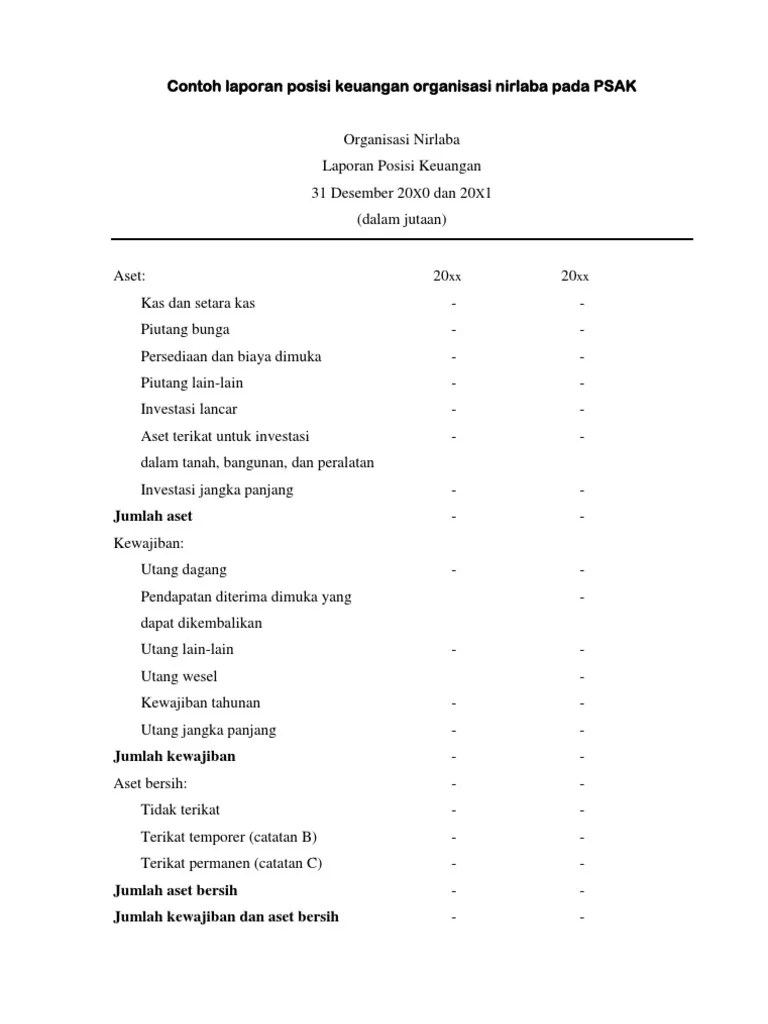 Sederhana, dimana organisasi tersebut tidak membuat laporan keuangan. Hitung jumlah modal dan utang secara sederhana seperti contoh berikut ini. Pengertian laporan keuangan adalah laporan yang menunjukkan kondisi financial sebuah usaha dalam periode waktu tertentu. Demikialah lampiran dari contoh laporan keuangan sederhana yang bisa digunakan oleh organisasi serta perusahaan kecil dan besar. Memudahkan perusahaan atau organisasi untuk melakukan estimasi arus . Berikut adalah cara membuat laporan keuangan sederhana untuk pengeluaran kecil dan besar. Laporan keuangan yang diterbitkan oleh perusahaan merupakan . Berikut ini adalah contoh laporan keuangan sederhana. Contoh format laporan keuangan menurut pernyataan. Contoh dan cara sederhana membuat laporan posisi keuangan, laba rugi. Laporan keuangan adalah laporan yang berisi informasi keuangan sebuah organisasi. Laporan keuangan adalah data yang menunjukkan aktivitas dan posisi keuangan dalam suatu organisasi atau bisnis dalam periode tertentu. Ini sangat diperlukan untuk membuat neraca awal.